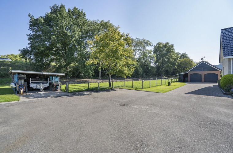 En dat onderheide terras achter het huis? Dat biedt niet alleen ruimte voor een flinke loungeset, maar ook de perfecte basis voor wie ooit wil uitbouwen of een serre wil plaatsen. Voeg daar nog een vrijstaande garage voor twee auto’s, zonnepanelen én volop privacy aan toe, en je snapt: dit is écht buitengewoon wonen.